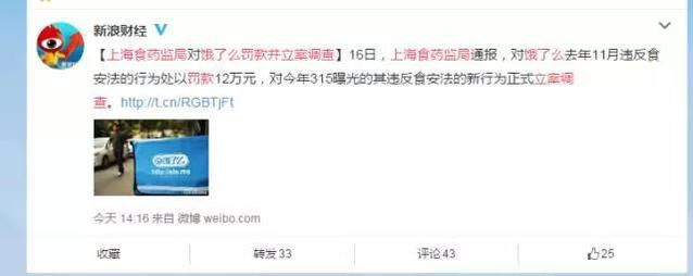 還拿倒運(yùn)悲催的餓了么為例,新浪新聞對(duì)此進(jìn)行了查詢,發(fā)現(xiàn)有七成網(wǎng)友反應(yīng),會(huì)影響對(duì)餓了么的使用,并且該公司還被處罰了12萬(wàn)元。